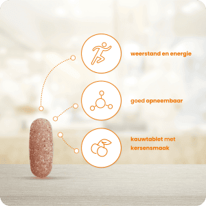 En het beste? Je hoeft geen grote of bittere pillen meer te slikken. Met de prettige kersensmaak en het gemak van een kauwtablet maak je van je dagelijkse vitamine-inname een heerlijk moment. Ideaal voor iedereen die moeite heeft met slikken of gewoon op zoek is naar een aangenamere manier om vitamines te nemen.