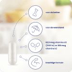 Deze combinatie versterkt de opname van calcium in de botten en ondersteunt de bloedstolling, essentieel voor een optimale gezondheid.