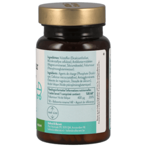 - Voedingswaarde: Elke tablet bevat 400 mcg foliumzuur, wat 200% van de Referentie Inname is.