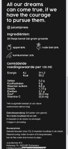 JuiceXpress Red Juice is na ontvangst drie dagen houdbaar in de koelkast en tot zes maanden in de vriezer. Voor de beste ervaring, geniet van je sapje gekoeld en schud het goed voor gebruik.