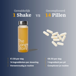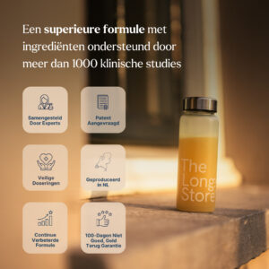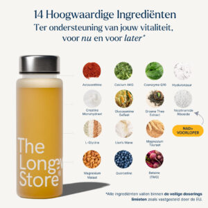- Alles-in-één formule met 14 bewezen longevity ingrediënten