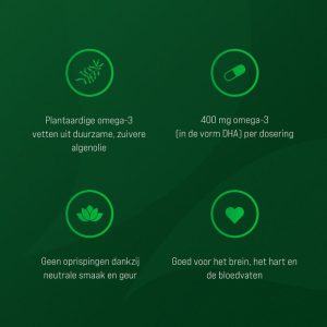 | DHA uit algen | Bevordert de hersenfunctie, ondersteunt het zicht en de hartgezondheid. |