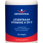 Met 60 softgels per verpakking biedt Orthovitaal Levertraan Vitamine A en D een gemakkelijke manier om deze belangrijke voedingsstoffen aan je dagelijkse dieet toe te voegen, vooral tijdens de donkere wintermaanden of voor mensen die niet regelmatig vette vis eten.