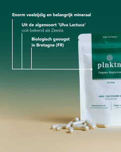 Verrijk je dagelijkse voeding met PLNKTN Biologisch Magnesium, afkomstig van de zuivere zeesla (Ulva Lactuca). Dit essentiële mineraal, cruciaal voor vele lichaamsprocessen, ondersteunt niet alleen je spierfunctie en energiestofwisseling, maar draagt ook bij aan het behoud van sterke botten en tanden. Elke capsule bevat 150mg pure magnesium, zorgvuldig geoogst en gedroogd om alle natuurlijke voordelen te behouden. Kies voor het beste uit de natuur met PLNKTN's 100% biologisch en toevoegingsvrij magnesium.