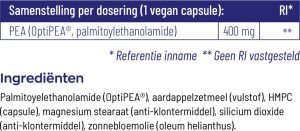 - Bevat 400 mg hoogwaardige PEA (OptiPEA®) per dosering.