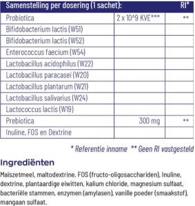 - Unieke combinatie van acht verschillende bacteriestammen voor een optimale darmflora.