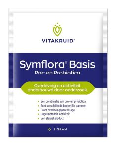 Ontdek de kracht van een gebalanceerde darmflora met Symflora® Original van Vitakruid, een hoogwaardige mix van pre- en probiotica. Deze formule combineert acht verschillende bacteriestammen die elkaar aanvullen en versterken, vergelijkbaar met een goed gebalanceerd voetbalteam. De toevoeging van prebiotica zorgt ervoor dat deze bacteriën een voedingsbodem hebben om op te groeien, wat hun overlevingskans en metabole activiteit in het lichaam verhoogt. Dankzij de ProbioAct® technologie overleven deze bacteriën de zure omgeving van de maag en blijven ze actief in het spijsverteringsstelsel. Symflora® Original is jouw dagelijkse ondersteuning voor een gezonde darmflora en algeheel welzijn.