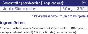 - Hoge dosering van 500 mg zuivere niacinamide per capsule.