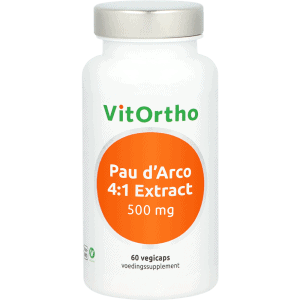VitOrtho Pau d’Arco 4:1 Extract 500 mg is een krachtig kruidenpreparaat dat afkomstig is van de schors van de Tabebuia heptaphylla boom. Dit supplement is speciaal ontwikkeld om de natuurlijke weerstand van het lichaam te ondersteunen, bij te dragen aan een goede nachtrust en de cardiovasculaire gezondheid te bevorderen. De formule biedt een vier keer geconcentreerd extract, wat neerkomt op 2000 mg kruid per capsule, voor een optimale dosis van de actieve stoffen.