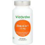 Versterk je dagelijkse gezondheidsroutine met VitOrtho Zink 4 in 1, een geavanceerde formule die vier goed opneembare zinkverbindingen combineert voor maximale efficiëntie. Dit supplement is essentieel voor het behouden van een sterk immuunsysteem, het bevorderen van gezond en glanzend haar, sterke nagels en de ondersteuning van stevige botten. Met VitOrtho's Zink 4 in 1 geef je je lichaam de dagelijkse zinkondersteuning die het nodig heeft, geoptimaliseerd voor een betere opname en effectiviteit, waardoor je je op je best voelt, elke dag weer.